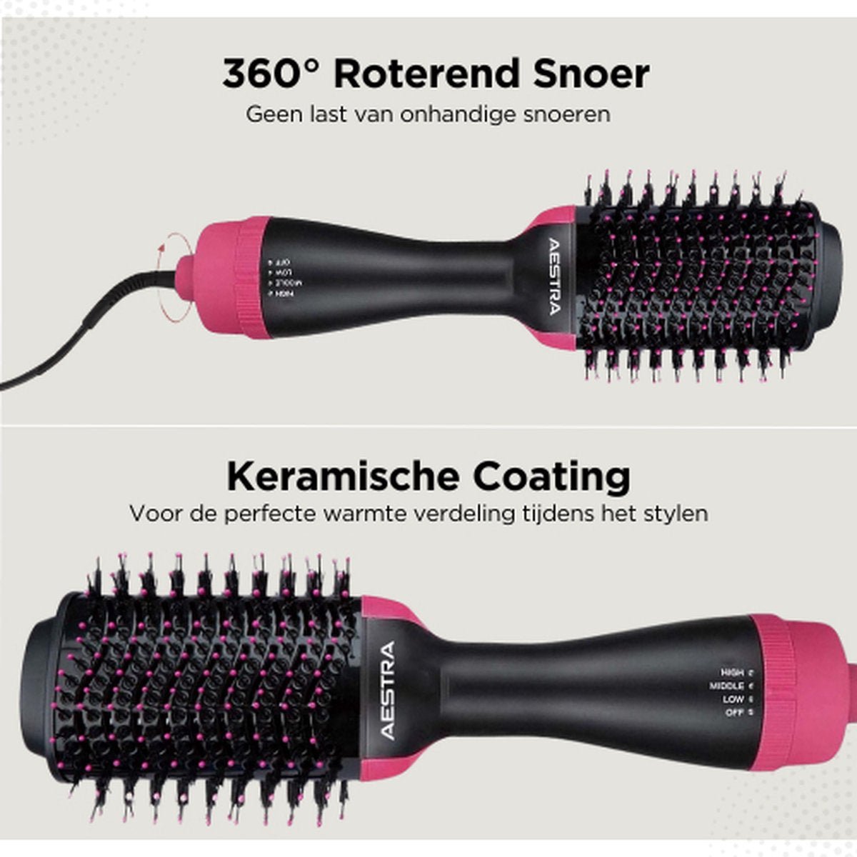 ✓ Warmte‑ en snelheidsinstellingen: Meerdere niveaus