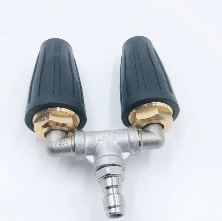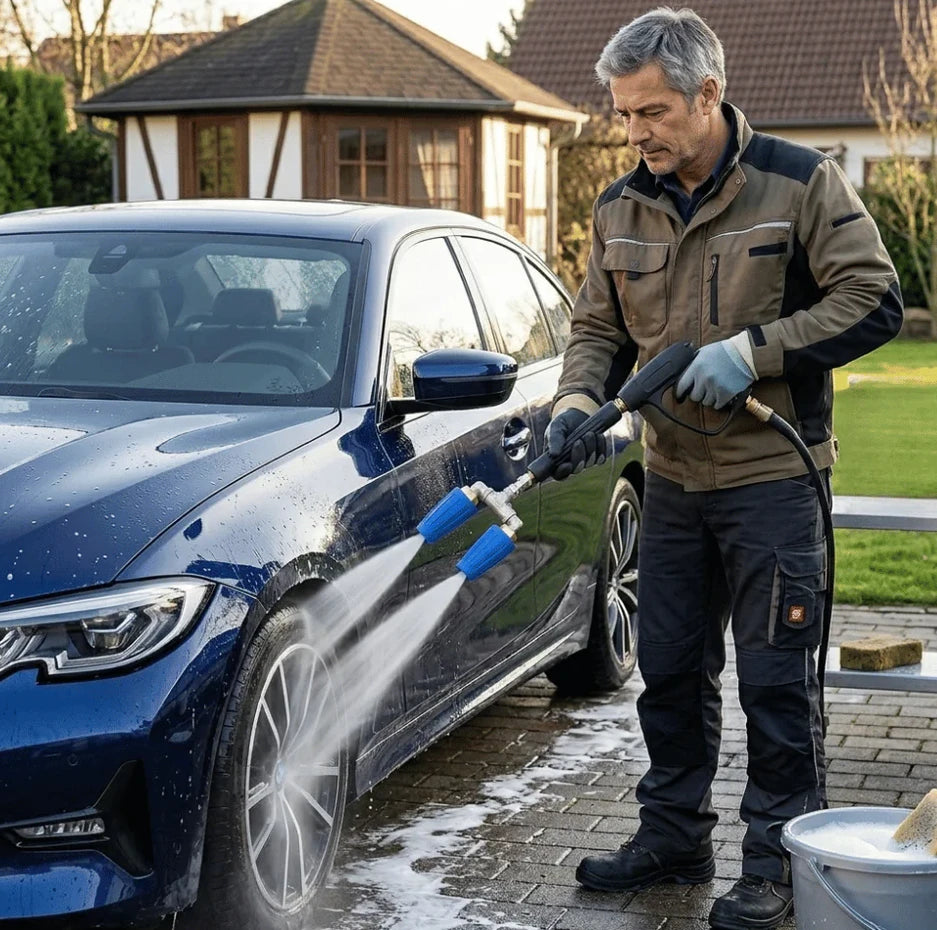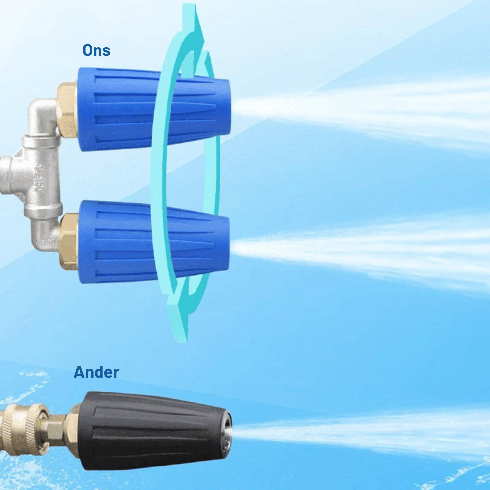 Dankzij de dubbele roterende jets wordt vuil niet alleen geraakt, maar losgedraaid en weggespoeld. Dit zorgt voor een veel diepere en gelijkmatigere reiniging dan een standaard nozzle.